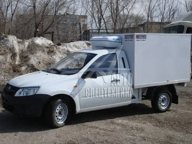Рефрижератор ВИС 2349 ГРАНТА, г/п 850 кг. Машина с полу-рамной конструкцией, задняя подвеска рессорная (трёх листовые, с возможностью добавления листов), двигатель 1,6 - инжекторный, 8 клапанный. Предназначен для перевозки охлажденных и замороженных продуктов.